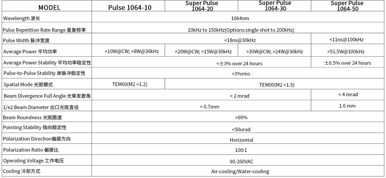 Pulse系列紅外激光器適用于太薄膜太陽能P1層蝕刻、ITO薄膜蝕刻、激光調阻、打標、切割、劃線、科研等應用領域。